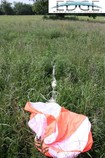 Note that the color of your parachute is important. In the picture above, the parachute (in this case a spherical chute with orange and white panels) definitely helped the team find the payload in the tall grass.